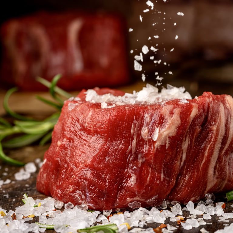 • Stek z polędwicy wieprzowej w kremowym sosie z kurkami podawany z kluseczkami kładzionymi i sałatką z buraczków